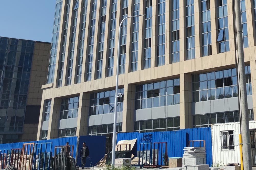 4 、玻璃面板安裝,隱框玻璃幕墻安裝:玻璃和副板注膠層在清潔、通風的室內注膠,市內的溫度、濕度條件應符合結構產品的規(guī)定。